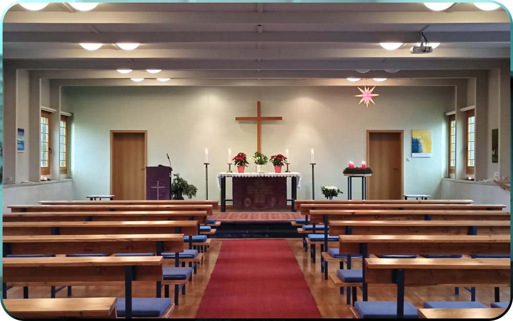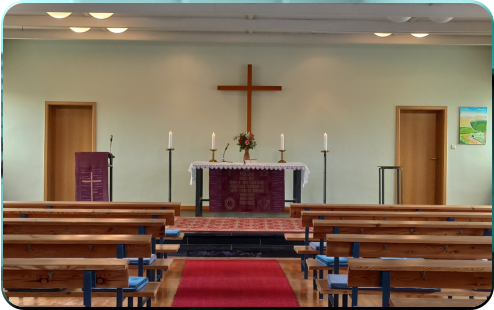 Gottesdienste und sonstige Gemeindeveranstaltungen finden im Kirchsaal Rebesgrün und im Kirchsaal Reumtengrün statt.